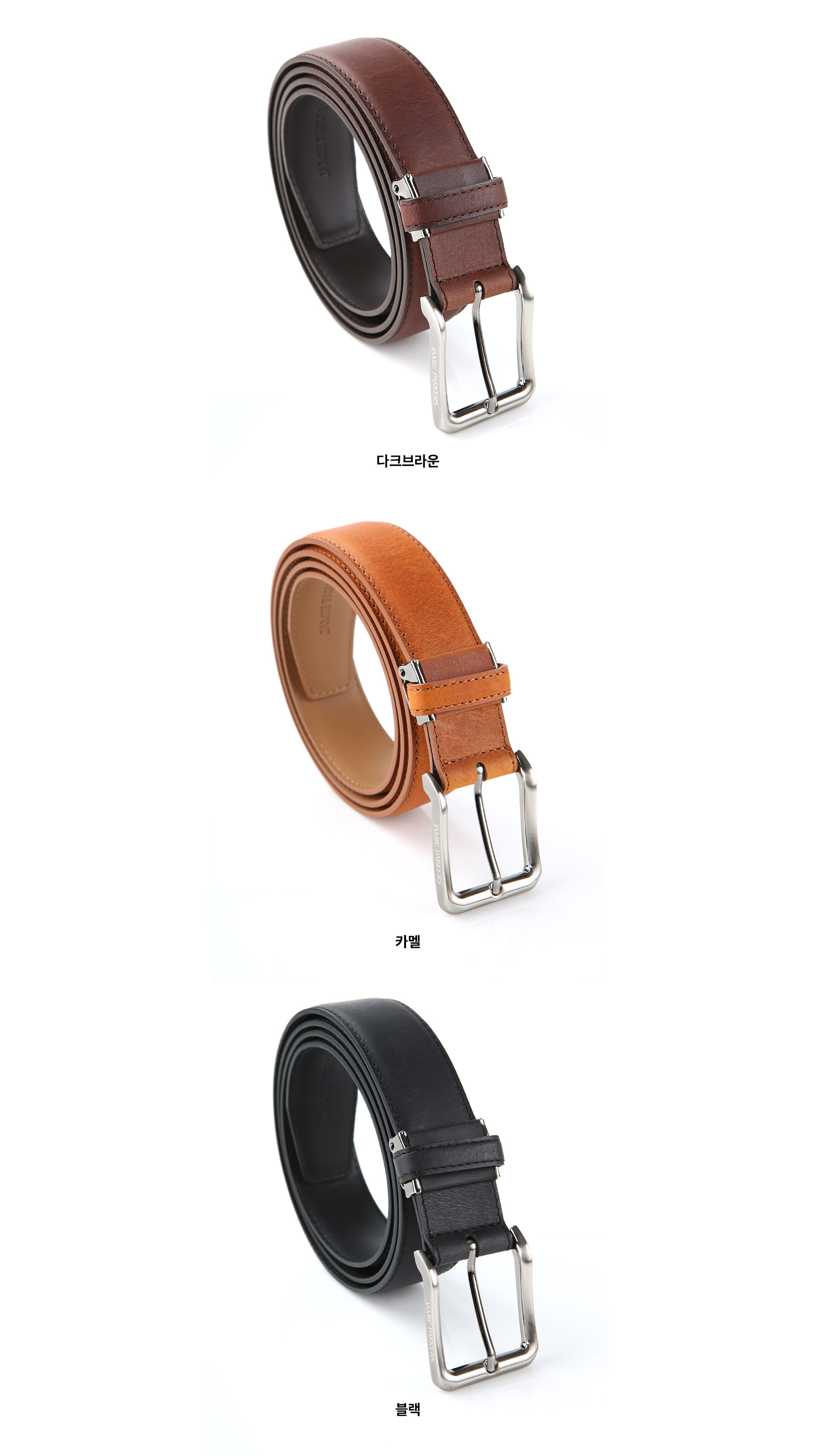 식물 추출물로 무두질해 자연스럽고 고급스러운 소가죽과 블랙 니켈이 어우러진 벨트는 다크 브라운, 카멜, 블랙 총 3가지 컬러로 출시됩니다. 사이즈는 L(30~36), XL(38~40) 두 개 사이즈로 출시됩니다.