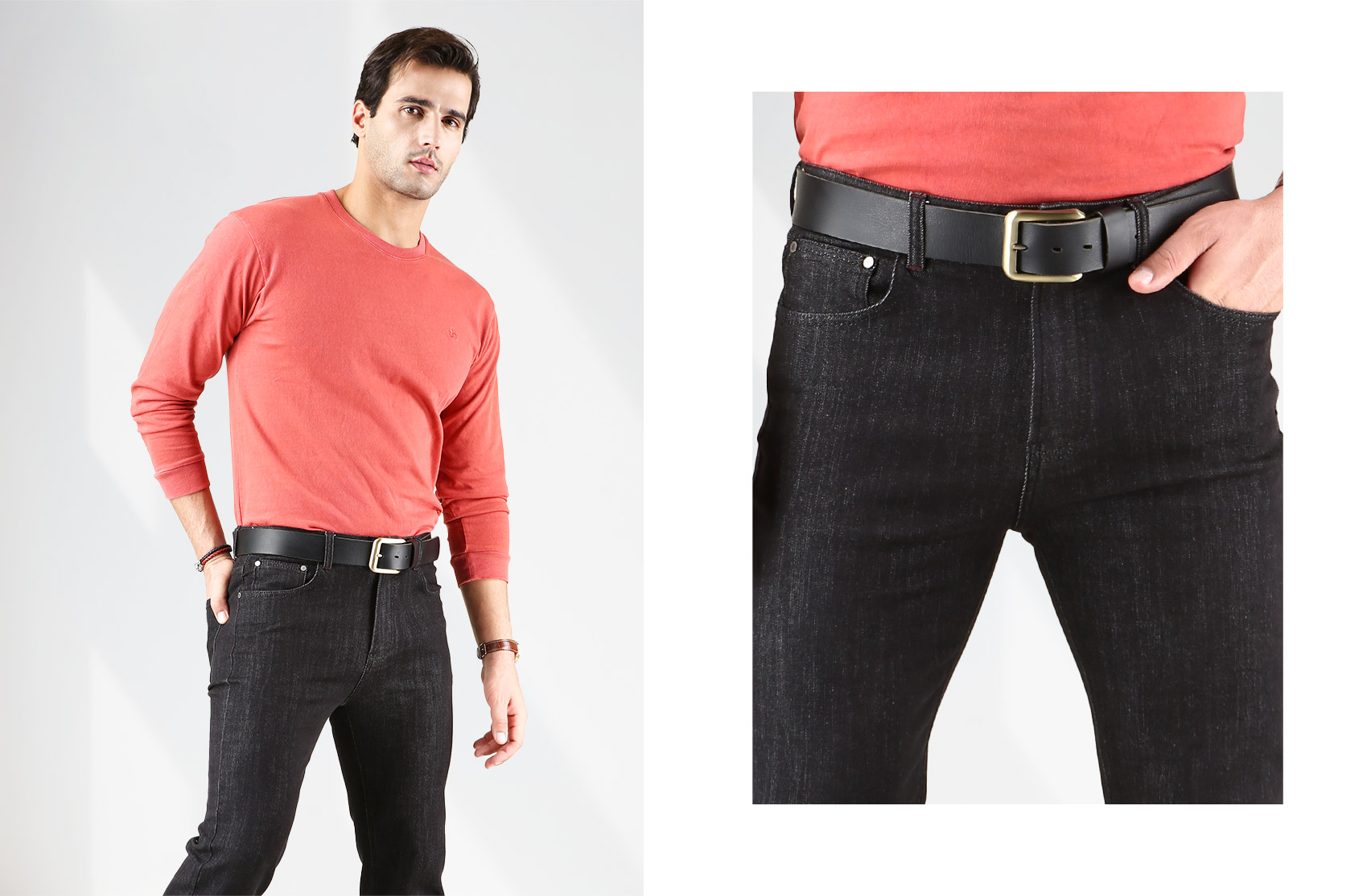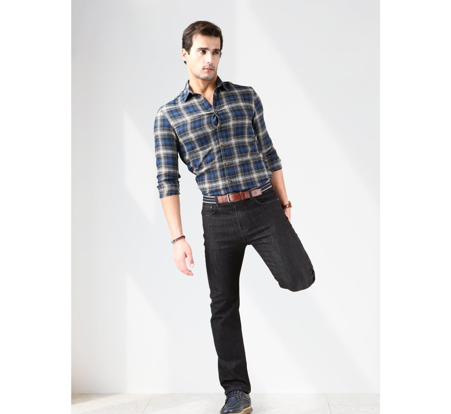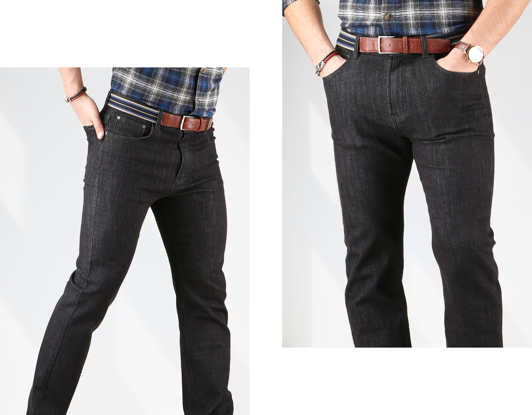 비즈니스 캐주얼 스타일의 블랙진과 오리지널 블루진