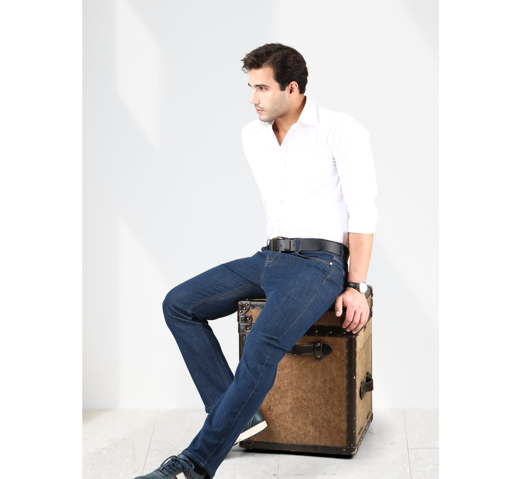비즈니스 캐주얼 스타일의 블랙진과 오리지널 블루진