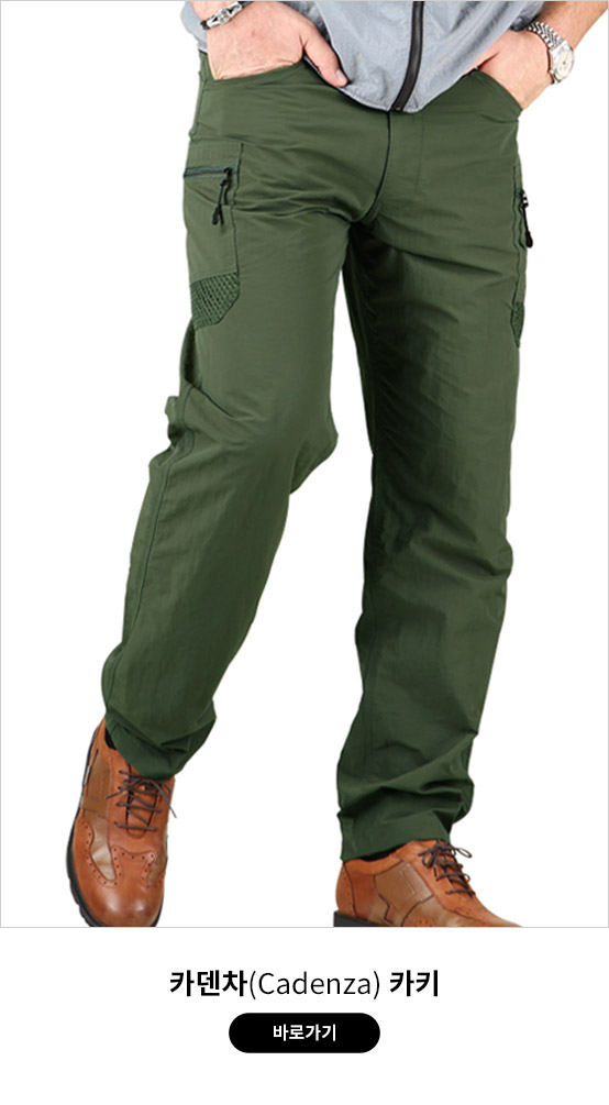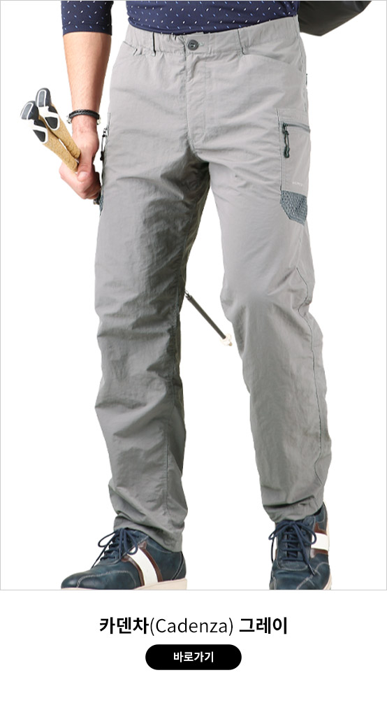 일상과 아웃도어 어떤 환경에서도 편안함과 패셔너블한 감각을 전해주는 카덴차 팬츠는 진한 올리브그린의 카키색과 라이트한 그레이, 감각적인 두 가지 컬러로 출시됩니다.