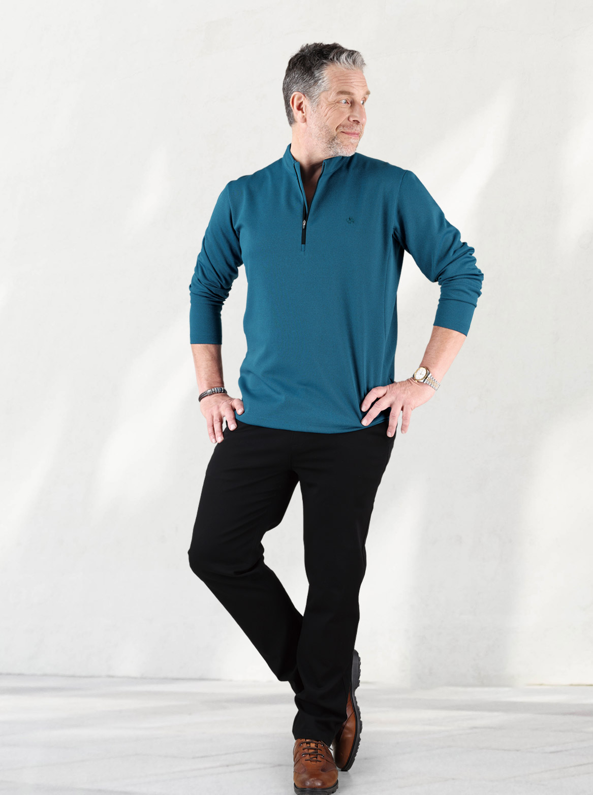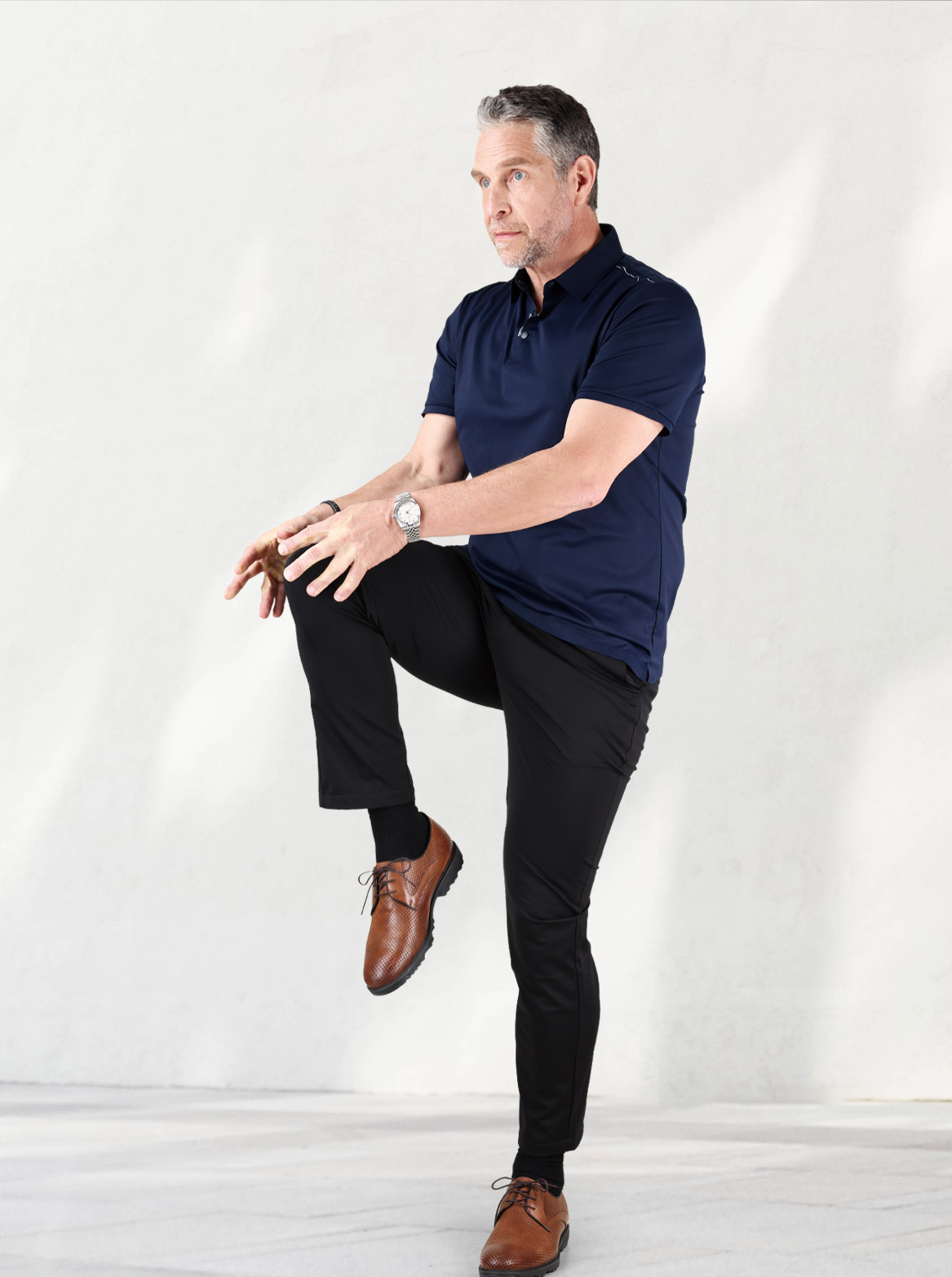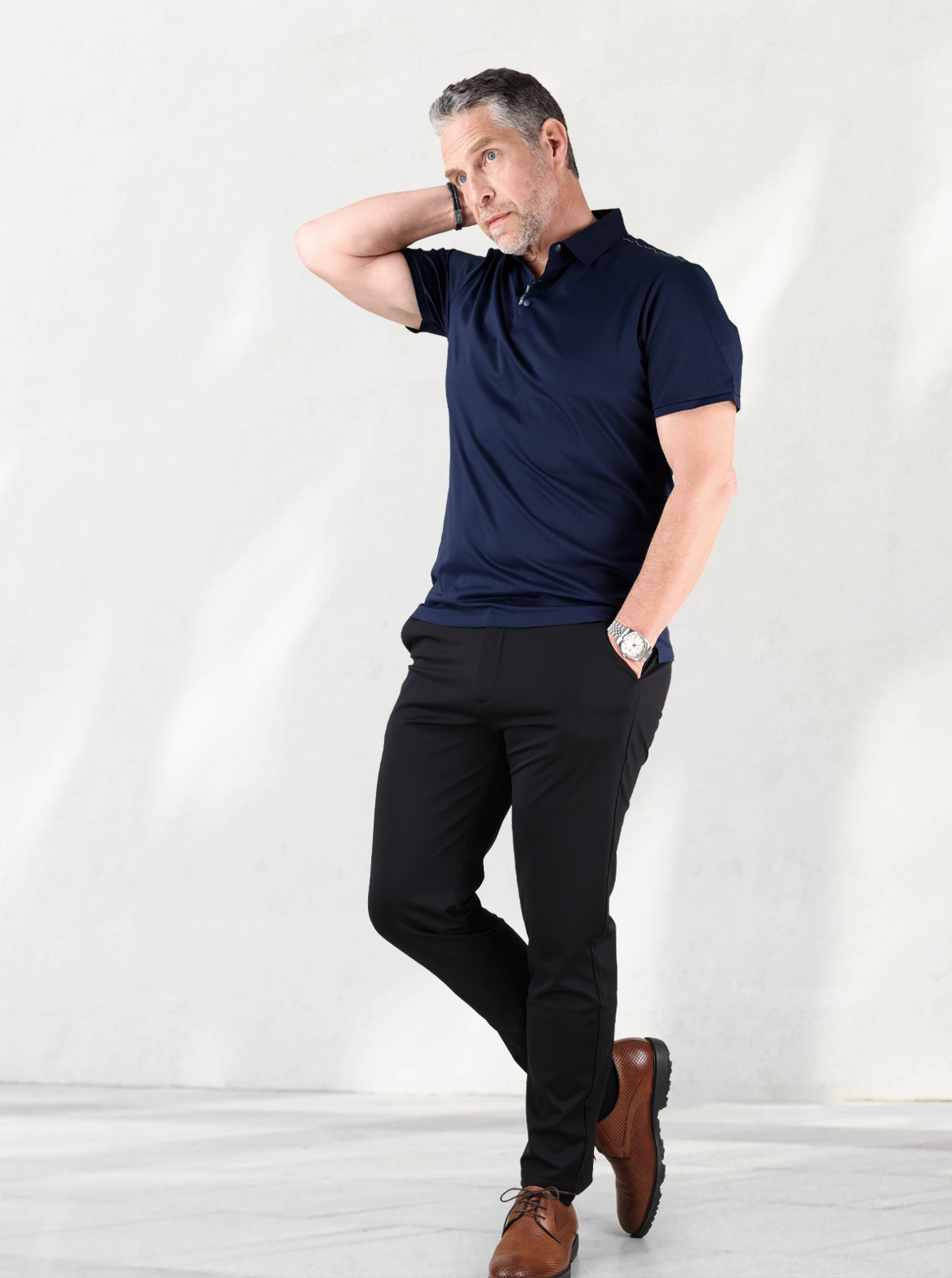 기능성 바지의 대부분은 스타일을 양보합니다. 하지만 케빈은 다릅니다. 입는 순간 느껴지는 몸에 ‘착’ 감기는 핏감, 슬림하고 날렵하게 떨어지는 실루엣은 그대로 유지하면서도 답답함 없이 가볍고 편안한 착용감을 선사합니다. 축 늘어지지 않고 탄탄하게 유지되는 형태감 덕분에 세미 정장부터 아웃도어, 캐주얼까지 모두 커버할 수 있습니다.