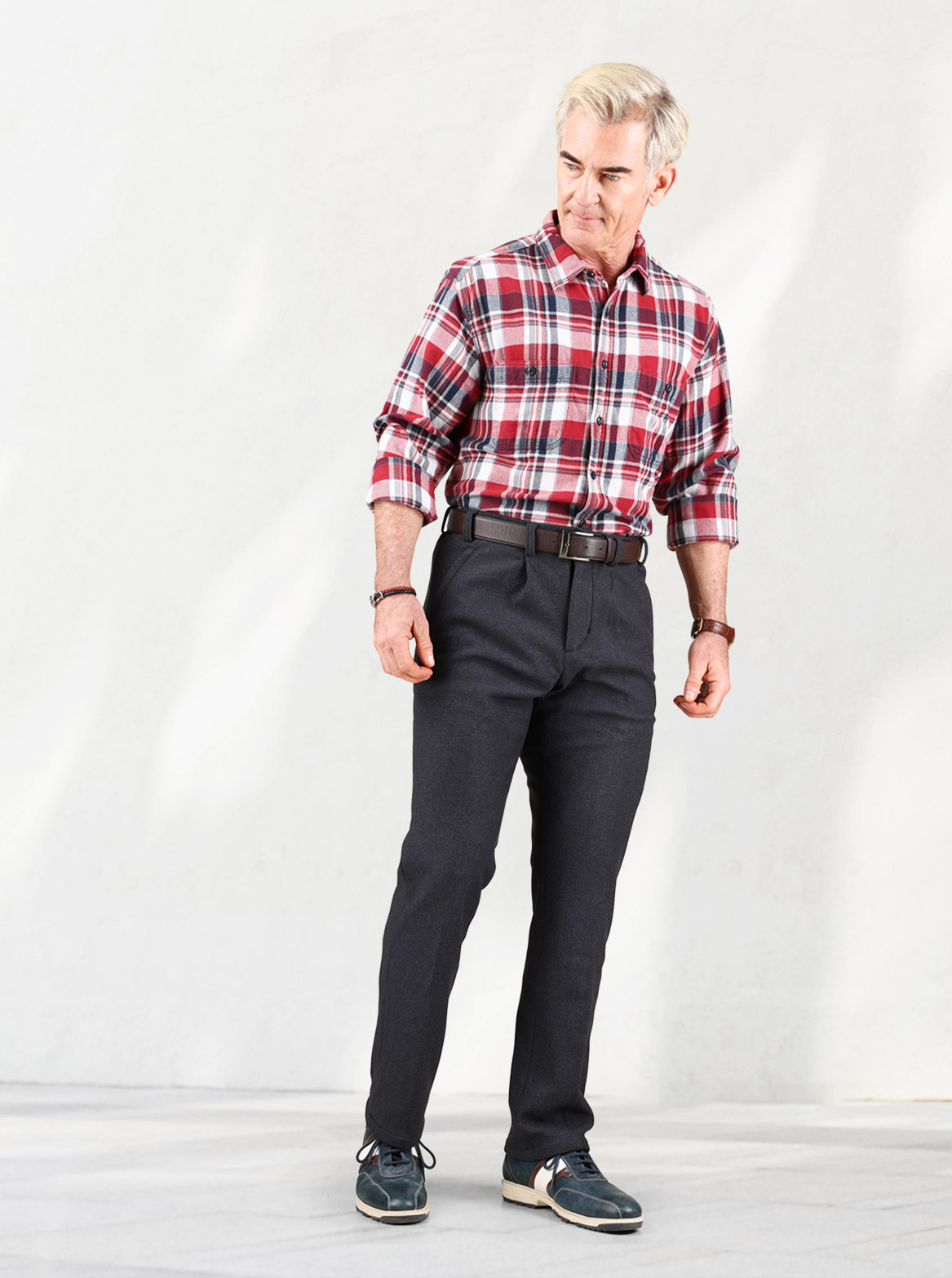 브리티시 클래식 패턴으로 완성된 세련된 겨울 바지